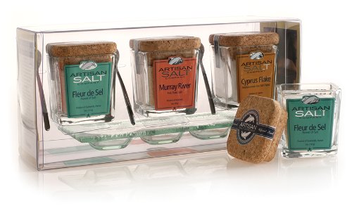 The Finishing Salt Trio is a luxurious collection of 3 full-size Artisan boutique glass jars and includes a beautiful glass serving tray and 3 stainless steel salt spoons. The Finishing Salt collection is packaged in a beautiful display box and makes the perfect gift for cooks, chefs and all salt lovers.