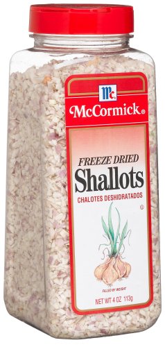 McCormick Freeze Dried Shallots. For dishes high in liquid, such as soups, stews, gravies, sauces, vegetables, and salad dressings. Add directly to food and allow to cook or stand 3 minutes to reconstitute. Ready to use. 1 oz. Freeze Dried = 7 oz. Fresh Ingredients: Freeze Dried Shallots. Nutritional Information: This product has no significant nutritional value.