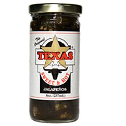 Taste of Texas Sweet and Hot Jalapenos. Tantalize your taste buds with jalapeno peppers made sweet. A versatile fiery favorite. An ultimate appetizer served with cream cheese, as well as a great topping for any dish. Substitute for pickles in tuna or chicken salad - delicious! Watch out, they're habit forming! Made in USA. Case of 12 - 8oz jars